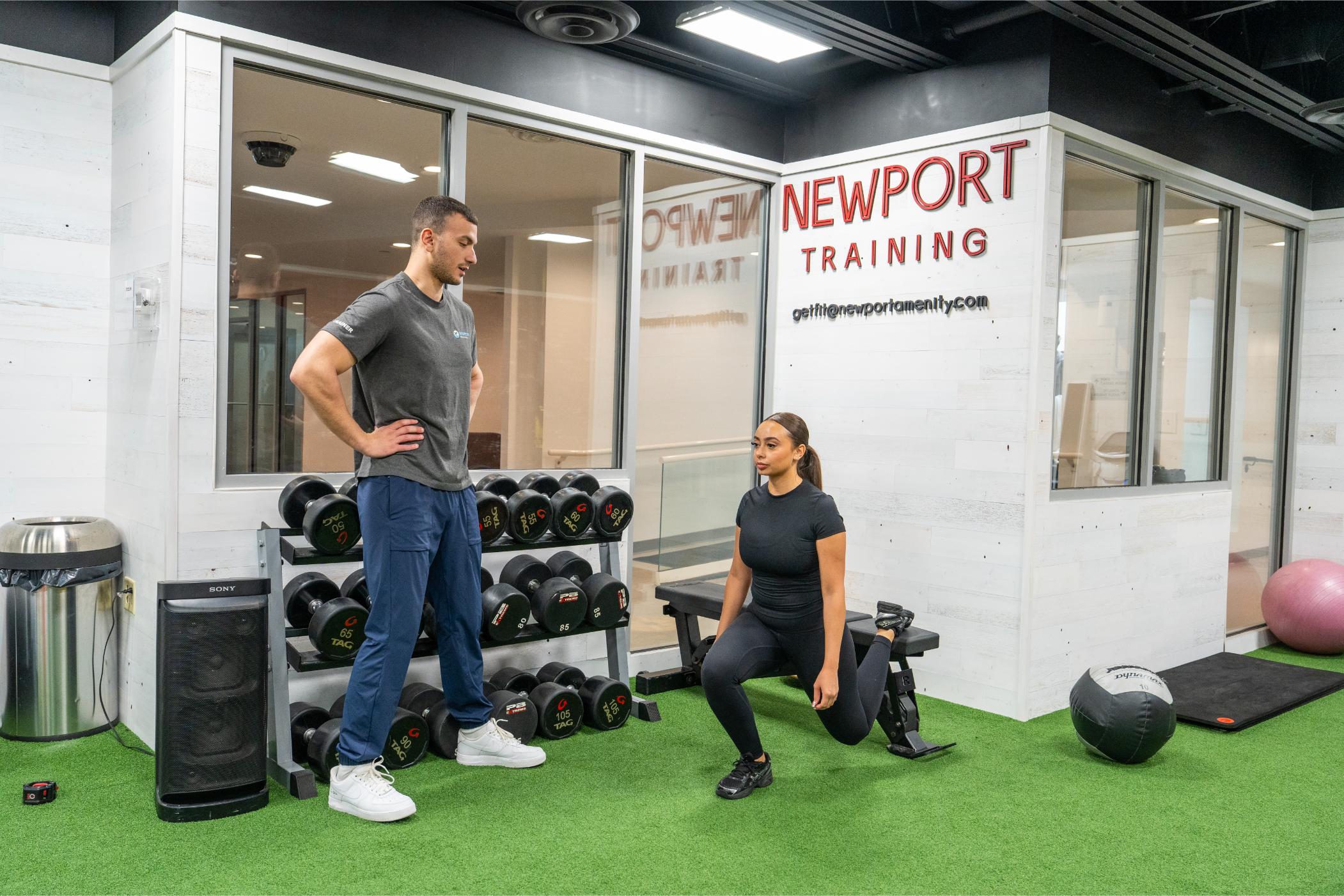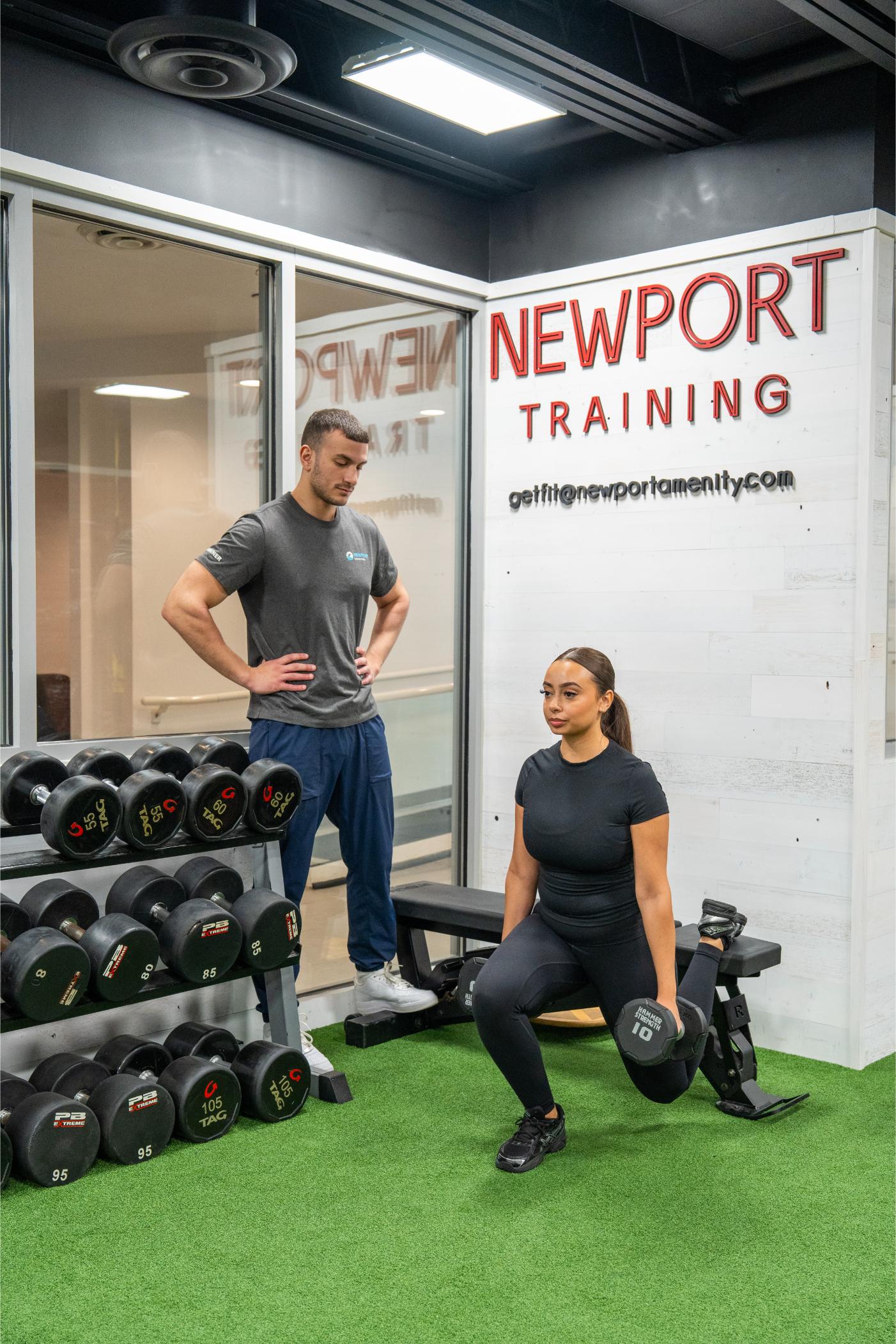 Newport Swim & Fitness is a 30,000 sq. ft. health and sports facility. The three-story fitness center has a dedicated cardio section and weights training room, a five-lane swimming pool, personal training services, and group exercise classes such as vinyasa yoga, Zumba, cardio dance, boot-camp strength training, spinning, aqua-aerobics, boxing, and more.